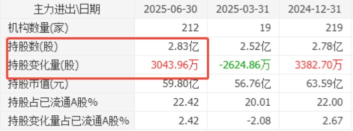 机构动态:二季度持股机构数达212家,较一季度增加193家,合计持股2.83亿股,加仓3043万股。