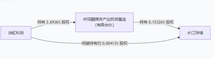 与长江存储股权关系:公司通过央视融媒体产业投资基金(有限合伙)间接持有长江存储股权。当虹科技则持有央视融媒体产业投资基金(有限合伙)2.6936%的股权,而央视融媒体产业投资基金则持有长江存储0.15326%的股权。整体拉看,当虹科技则接持有长江存储0.00413%的股权,整体比例很低。