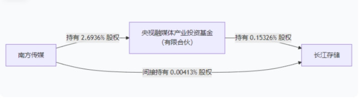与长江存储股权关系:公司通过央视融媒体产业投资基金(有限合伙)间接持有长江存储股权。南方传媒持有央视融媒体产业投资基金(有限合伙)2.6936%的股权,而央视融媒体产业投资基金则持有长江存储0.15326%的股权。整体来看,南方传媒间接持有长江存储0.00413%的股权,整体比例很低。