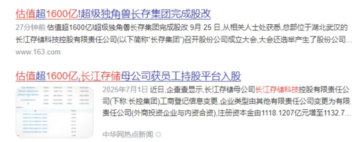 数据显示,长江存储注册资本金由1118.1207亿元增至1132.7896亿元,增幅约14.67亿元,变更日期为2025年6月27日。